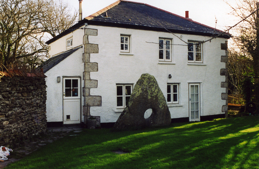 This beautiful holed stone is the last remaining of other pierced megaliths around Constantine. It has been variously described as a Neolithic chambered tomb blocking stone to a later standing stone. A local tradition of piercing stones seems to have developed in the West of present day Cornwall with many examples surviving to this day. As with other holed stones it was believed that the Tôlven had healing powers. A sick child was passed through the hole nine times and laid on the grass mound nearby to sleep with sixpence placed under its head.